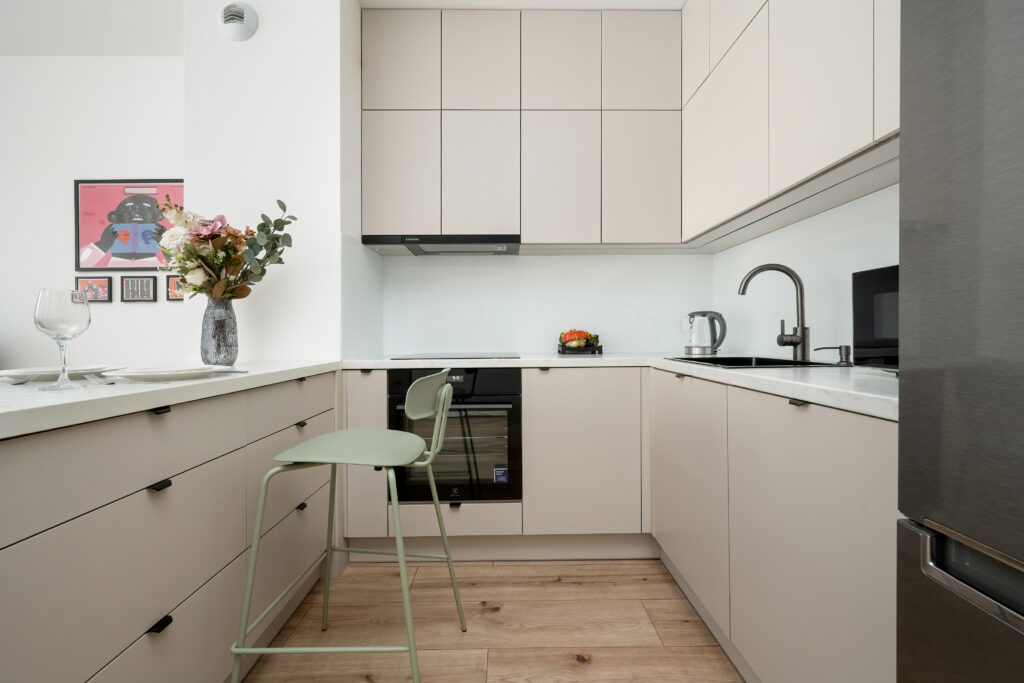 Przestrzeń została zaprojektowana z myślą o komforcie singla lub dwóch osób, bez zwierząt.