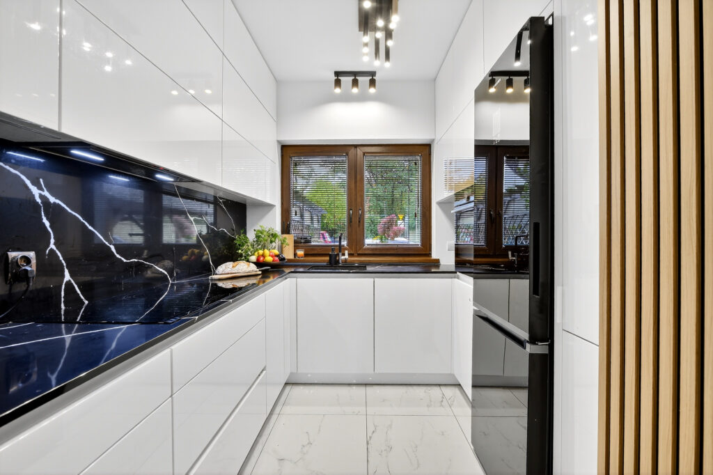 - widnej pojemnej kuchni wykonanej na wymiar,