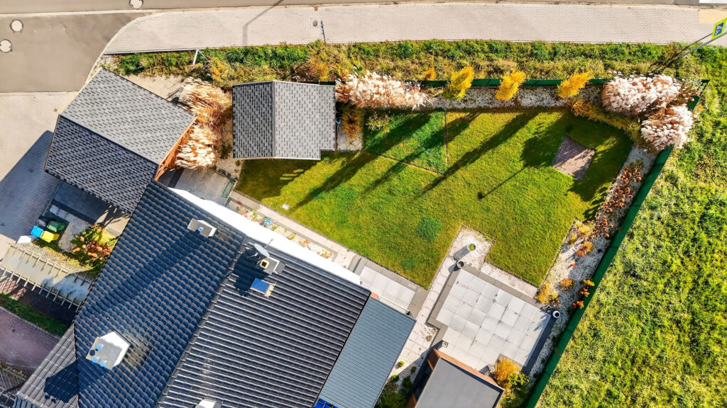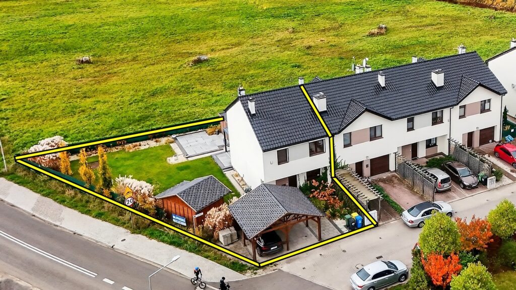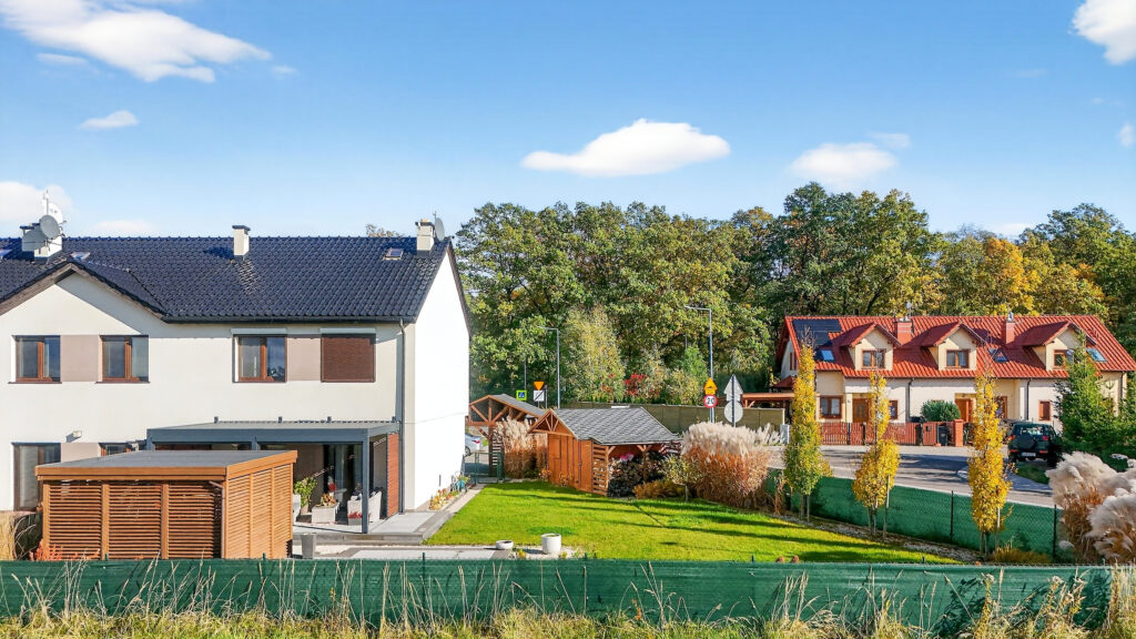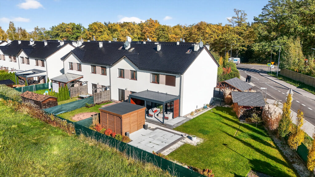 Segment z 2019 roku o powierzchni 93,21 m2 znajduje się na skrajnej, dużej działce o powierzchni 493 m2. To usytuowanie zapewnia większy komfort i prywatność mieszkańcom, ponieważ dzielimy płot tylko z jednym sąsiadem.