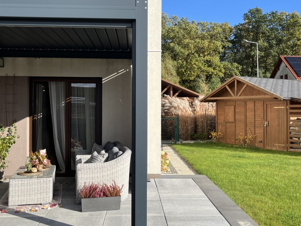 - drewniany domek ogrodowy,