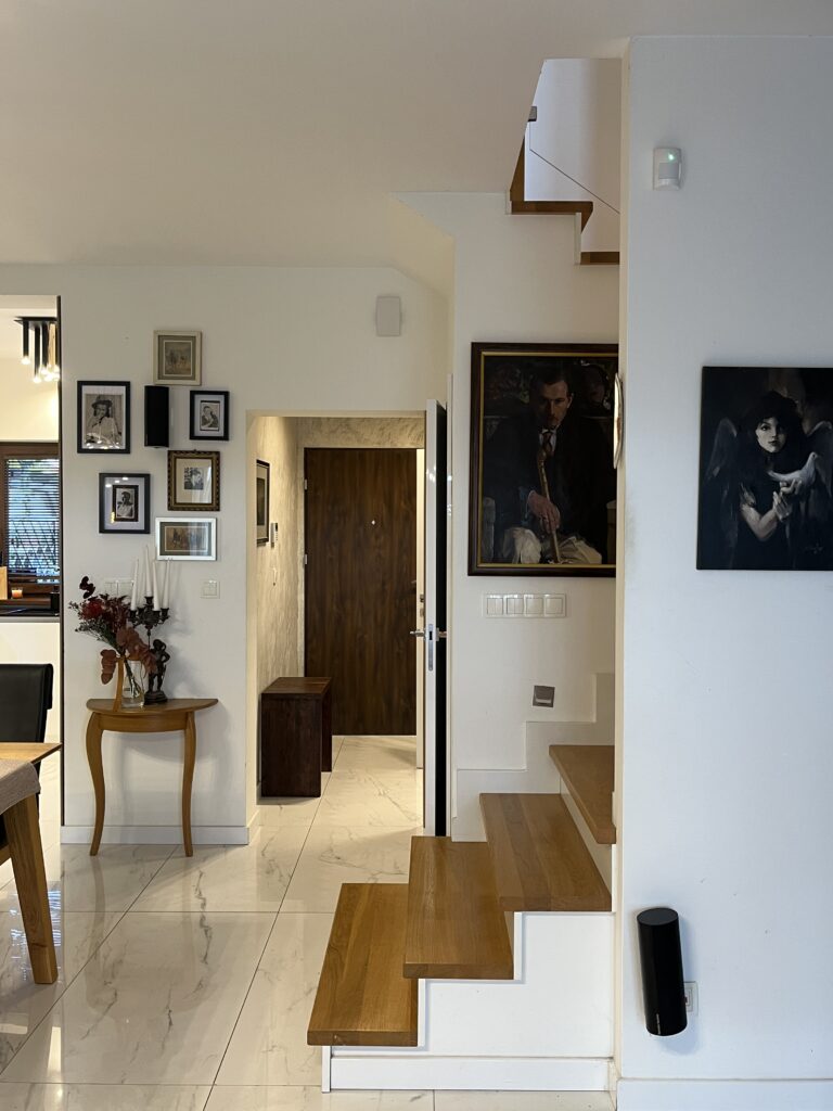 - wejście na wykończone poddasze rozkładanymi schodami